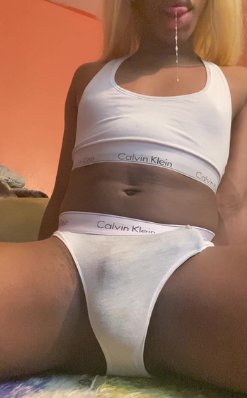 Una tgirl latina curvilínea en pantys disfruta de una sesión de auto-masturbación.