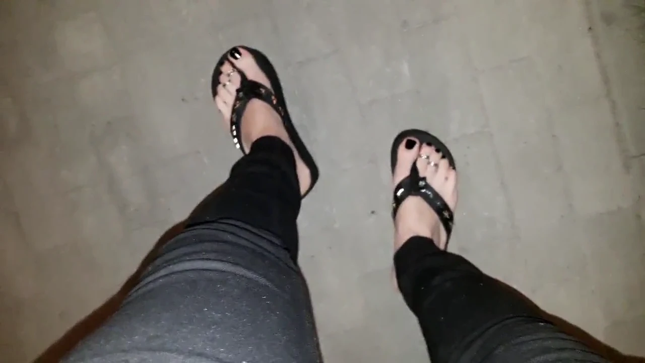 G-strings de plataforma negra en acción con el aficionado Heelex al aire libre